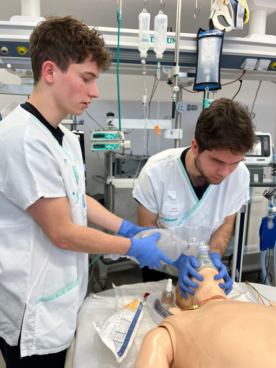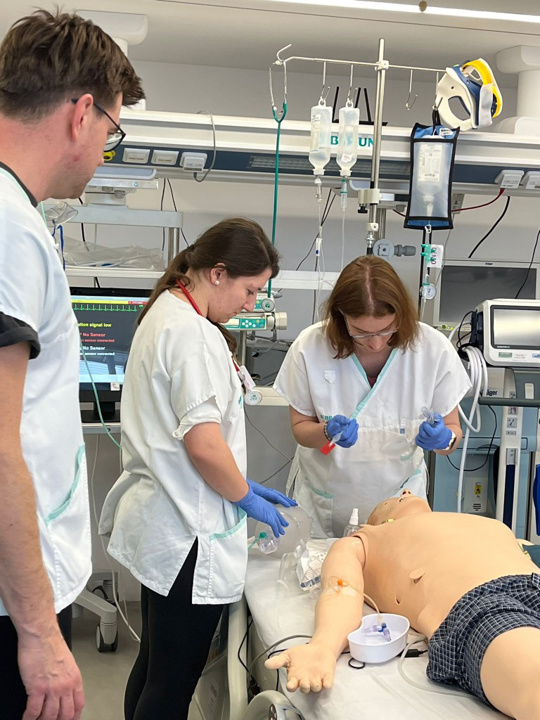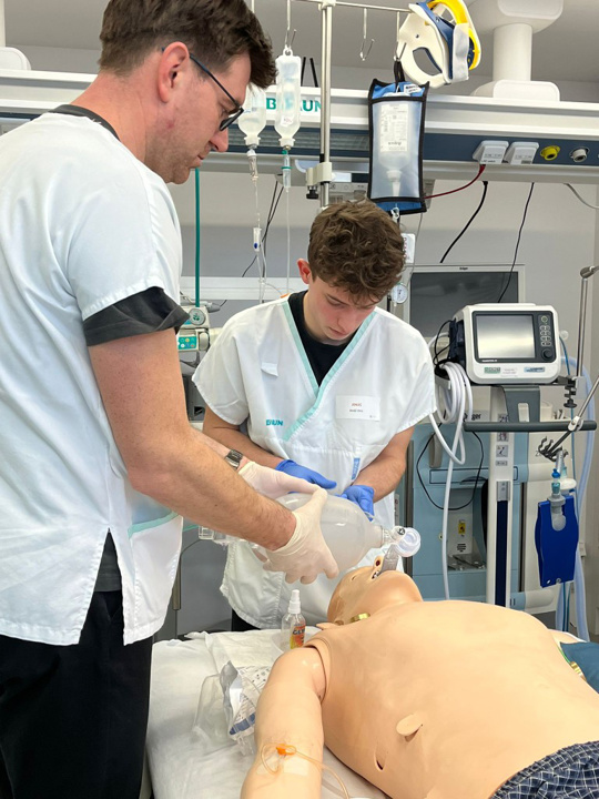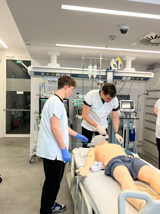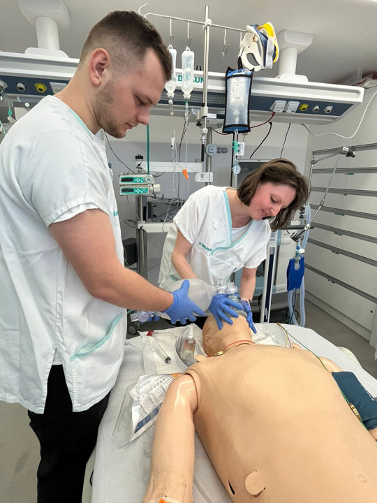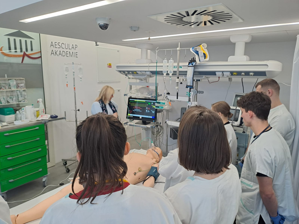 Aesculap Akademie CZ & SK a vedoucí programu Zdravotnické záchranářství studenty nejdříve seznámili s funkcí simulátoru Karel, procvičovali některé detailní úkony jako např. zajištění dýchacích cest, nepřímou srdeční masáž, zajištění přístupu i.o., defibrilaci a následně všechny tyto dovednosti vyzkoušeli na simulovaných scénářích na jednotce intenzivní péče.