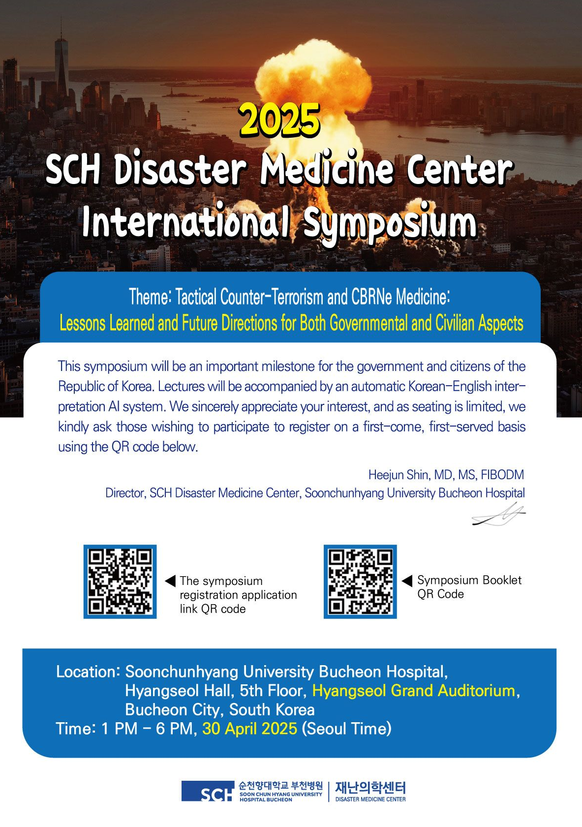 PhDr. Zdeněk Jindříšek se účastnil mezinárodního sympozia zaměřeného na taktický boj proti terorismu a CBRNe medicínu, kam byl pozván jako jako instruktor kurzu (CIREcourse) v rámci, které se konalo v Centru medicíny katastrof při univerzitní nemocnici v jihokorejském Bucheonu (Soul) (pozvánka) (foto) |