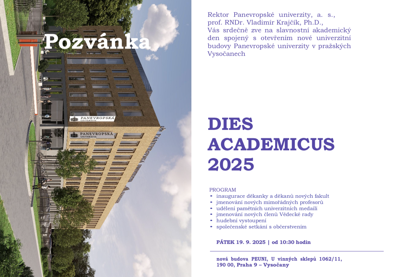 rektorka VŠZ doc. PhDr. Jitka Němcová, PhD. se na pozvání rektora Panevropské univerzity prof. RNDr. Vladimíra Krajčíka, Ph.D. zúčastnila slavnostního akademického dne spojeného s otevřením nové univerzitní budovy (pozvánka) |